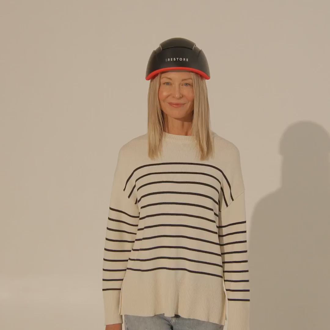El iRESTORE Elite es un dispositivo aprobado por la FDA que utiliza terapia de luz roja de triple longitud de onda para reactivar folículos capilares inactivos y estimular un crecimiento más grueso, saludable y rápido del cabello desde casa.