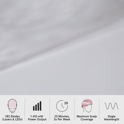 El iRESTORE Professional es un dispositivo aprobado por la FDA que utiliza 282 láseres y LEDs (1410 mW) con terapia de luz roja Lumitech para reactivar folículos inactivos y promover un cabello más grueso, saludable y con mayor densidad. Su diseño patentado de cobertura extendida alcanza la línea frontal, laterales y coronilla en una sola sesión, con ajuste cómodo y ventilado para uso prolongado.